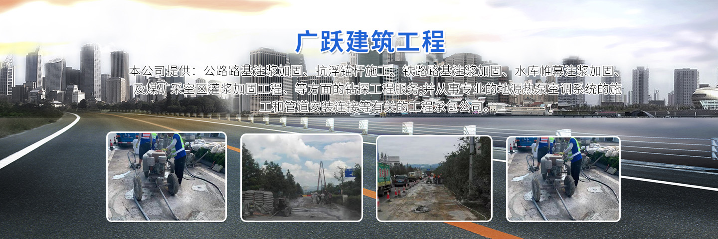 徐州廣躍建筑工程有限公司,公司成立于2010年,有專業(yè)施工人員50人,從事專業(yè)加固注漿施工。 本公司提供:公路路基注漿加固、抗浮錨桿施工、鐵路路基注漿加固、水庫(kù)帷幕注漿加固、及煤礦采空區(qū)灌漿加固工程、等方面的鉆探工程服務(wù);并從事專業(yè)的地源熱泵空調(diào)系統(tǒng)的施工和管道安裝連接等有關(guān)的工程承包公司。 公司成立以來(lái)一直專注于地質(zhì)鉆井工作,技術(shù)力量雄厚、設(shè)備先進(jìn):擁有專業(yè)的機(jī)械地質(zhì)鉆井精英隊(duì)伍;并具有GSY --150鉆機(jī)30余臺(tái)、GSY---200鉆機(jī)20余臺(tái)、專業(yè)回填封孔砂漿泵4臺(tái)等機(jī)械設(shè)備。公司稟承“優(yōu)質(zhì)的工程、優(yōu)惠的價(jià)格、優(yōu)良的售后服務(wù)”的經(jīng)營(yíng)理念,以“客戶滿意”為原則,著力打造一支高效、專業(yè)、信譽(yù)的工程服務(wù)團(tuán)隊(duì)。 具體服務(wù)項(xiàng)目:工程施工降水井、水源空調(diào)井、地源熱泵井、機(jī)鉆深井(工廠專用井)、石頭井、飲用水井、農(nóng)田井、地基降水處理、大型基坑降水、地下室、車庫(kù)以及橋梁注漿加固等業(yè)務(wù)。可用于廠生產(chǎn)用水,機(jī)械冷卻用水和生活用水,用水量可根據(jù)貴公司的需求量身訂做。